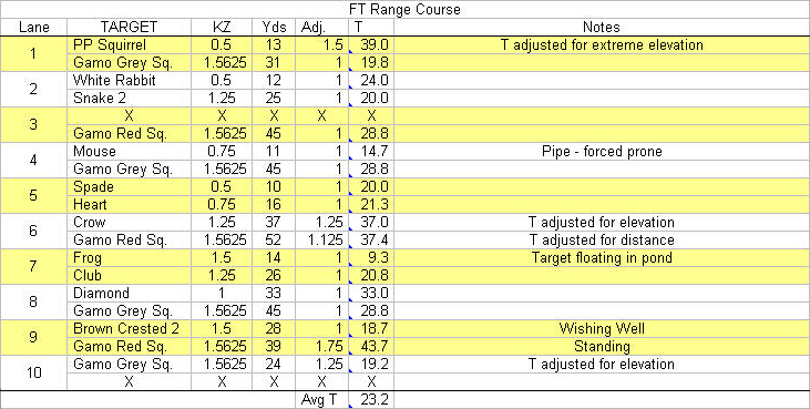 Following lunch, the action shifted to our field target range course. This course had all 10 lanes next to each other in a more open setting. The continuous firing line was 70 feet long with a nice wide pea gravel base and tent canopies over the top. As was mentioned previously, the look and feel of the field target range course was completely different from the walking course. The tent canopies came in particularly handy this year as the previously advertised thunderstorms opened up on us toward the end of the match! The break down of the field target range course lanes was as follows: