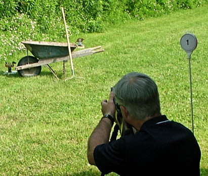 There were a few hiccups to deal with as several targets needed attention, primarily to repair the braided steel wire leaders used to attach the reset cords to the targets. These wire leaders had served us well in the past but this year their number was up and they were being completely severed. Unfortunately, two targets proved overly problematic and had to be eliminated from the match. The can/out house on lane 3 had a faulty retaining pin that would occasionally rotate, bind up the paddle, and prevent the target from falling. And the bull in lane 10 failed to fall on clean hits from shooters on several different squads. Thus, scores were calculated as if these targets didn't exist.