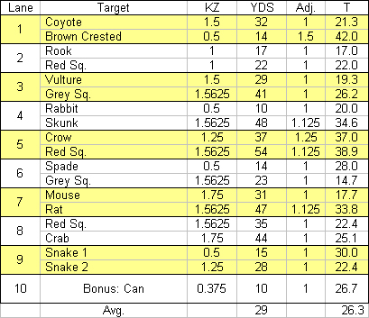 | KZ | Yards | Adj. | T | Target | Remarks | |
